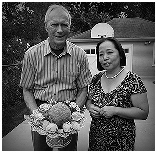 Clint Eastwood accepting Genevieve’s fruit carving gift on the set of “Gran Torino” in Highland Park, MI.